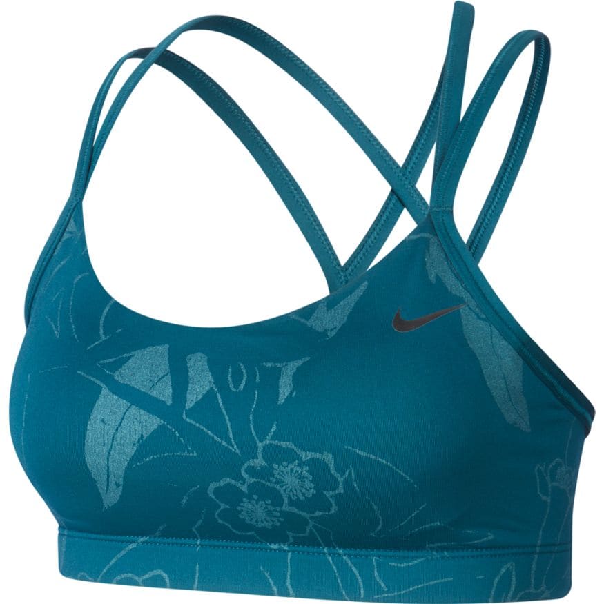 Спортивное бра Nike Favorites обеспечивает поддержку во время занятий низкой интенсивности. Такой топ отлично подойдет любительниц йоги, пилатеса, танцев, а также в качестве повседневного варианта под майку или футболку. Приятный современный дизайн в синем цвете легко сочетать с любыми тайтсами или спортивными брюками. Слегка заметный цветочный принт добавит в образ индивидуальности и женственности. Фирменная ткань Nike Dri-FIT, позволяет эффективно бороться с лишней влагой, выводя ее на поверхность ткани, где она быстро испаряется. Материал обладает высокой устойчивостью к истиранию и не теряет своего внешнего вида, даже после многочисленных машинных стирок. Вы сможете полностью сконцентрироваться на процессе тренировок и оставаться сухой. Эластичный гладкий пояс под грудью надежно фиксирует топ на теле, а плоские швы не доставляют дискомфорта во время физической активности и не натирают кожу. Съемные вкладыши позволяют создать идеальную форму и регулировать посадку для повышенного комфорта. Такой элемент спортивного гардероба сделает тренировки более эффективными и обеспечит естественную свободу движений на протяжение всего времени.Особенности и преимущества: